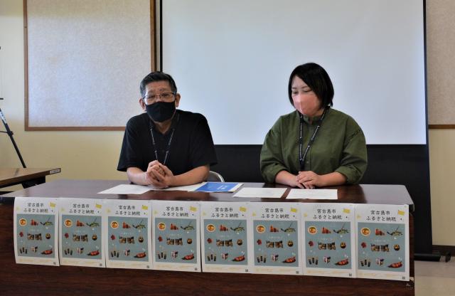 宮古島観光協会(吉井良介会長)は24日、会見を開いて「2022年度宮古島市ふるさと納税返礼品提供事業者説明会」を27日午後3時から同協会で行うことを発表した。市における21年度の寄付金額は過去最高額を達成し、県内市町村で1位となった。川満正寛事務局長は「ふるさと納税は12月にピークを迎える。まだまだ埋もれている商品も多いと思うので、興味がある事業者は気軽に参加してほしい」と呼び掛けた。