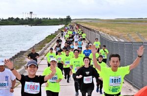 開会式で座喜味一幸市長は「健康増進のため、思い思いに海を見て空気を吸って楽しく走ってください」とあいさつした。