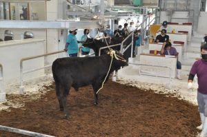 成牛を含めた上場頭数は337頭で332頭が取り引きされた。成牛を含めた1頭平均価格は53万8460円。去勢が66万1050円、雌が39万8470円。全体の販売額は1億7876万8700円となった。