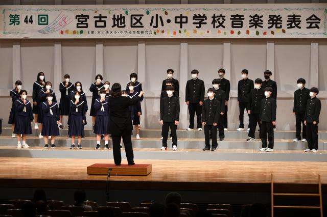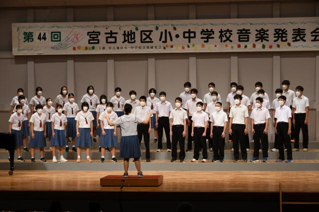 第44回宮古地区小・中学校音楽発表会(主催・宮古地区小中学校音楽教育研究会)が23日、マティダ市民劇場で開催された。小学校の部に10組、中学校の部に11組が出場。この日のために練習を重ねてきた息の合った歌声のハーモニーを会場に響かせた。審査の結果、県大会派遣推薦グループに小学校では伊良部島6年1組と平良第一6年1組、中学校では上野3年と北3年4組が選ばれた。