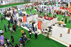 開会式であいさつした同まつり実行委員会会長の根路銘康文宮古島商工会議所会頭は「家族で楽しめる内容となっている。このまつりを契機に宮古圏域の新たな島おこしを図るべく、今後も地域特性を生かした産業振興を目指し関係機関と連携の下、宮古経済の自立化に向けて取り組んでいきたい」と述べた。
