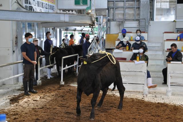 成牛を含む全体の上場頭数は6118頭で、うち競り落とされた頭数は6055頭だった。1頭平均価格は57万1908円、平均キロ単価は2000円を割り込み1923円だった。市場別の販売額は宮古が26億9229万円、多良間が7億7060万円となった。