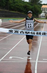 学区対抗の第72回上地伸栄旗全宮古男子駅伝競走大会と第15回立津工芸社旗全宮古女子駅伝競走大会が11日、市陸上競技場をスタート・ゴールとする男子8区間21キロ、女子7区間13キロのコースで行われた。男子13学区、女子11学区が出場し、たすきをつないでゴールを目指した結果、男子は14年ぶりに東が、女子は2年ぶりに南が優勝を果たした。