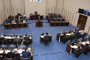 有事の避難施設としてシェルター設置の可能性について前里氏がただしたのに対しては座喜味一幸市長が「南西諸島におけるシェルターの問題は今後、大変重要な課題になると思っている。特に沖縄県内は地下構造物が乏しいと認識している。宮古においては公共施設の地下構造物にシェルター機能を持たしていくという整備の在り方が大変重要ではないかと思っている」との考えを述べた。