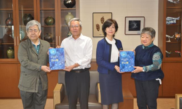 ニコライ・A・ネフスキー生誕130年・来島100年記念文集「子ぬ方星(ニヌパブス)」が発刊され、記念文集編さん委員会の宮川耕次さんが21日、市役所に座喜味一幸市長、大城裕子教育長を訪ね、発刊を報告した。宮川さんはこれまでの編さんの経緯を説明しながら「多くの研究者から論文21編、文芸9編の寄稿があり、収録されている」と紹介した。