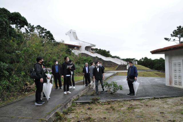 市観光商工スポーツ部は21日、伊良部牧山公園活用に関するサウンディング型市場調査の現地見学会・説明会を同公園内で行った。5事業者の担当者8人が参加し、観光商工課職員の説明を聞きながら展望台など公園内を見て回った。同課職員は施設概要や地元住民の意見、観光客からの声などを紹介し、参加者が積極的に質問していた。