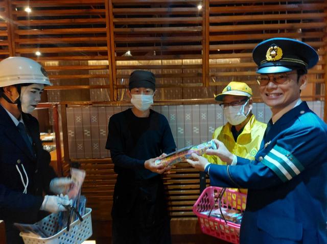 同作戦は、年末年始の交通安全県民運動期間に伴い、交通安全のシンボルであるリアルまもる君が交通安全を呼び掛けるとともに、グッズを配布することで交通安全の意識高揚を図る目的で実施。この日は西里大通りの多くの店舗を巡り関係者に手渡した。