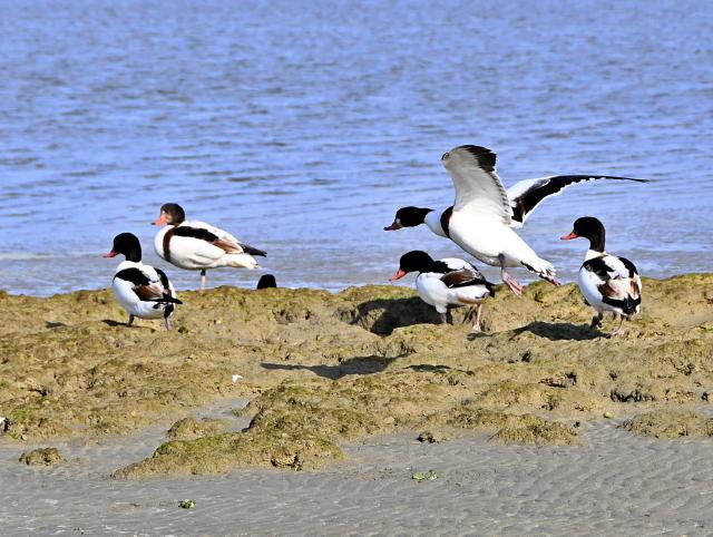 ヨーロッパ北西部の沿岸やアジア中央部、中国東北部で繁殖し、日本には冬鳥として渡来するツクシガモ10羽が26日、与那覇湾で確認された。