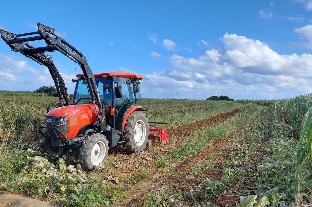2期目に向けて耕運作業を始めた=26日、下地洲鎌
