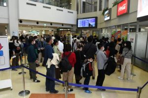 年末年始を宮古島で過ごした帰省客や観光客らが帰路に就くUターンのラッシュが2日から始まっていて、宮古空港では3日、時間帯によっては出発ロビーに手荷物検査の順番を待つ人の長い列ができるなどの混雑が見られた。