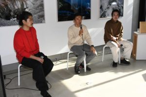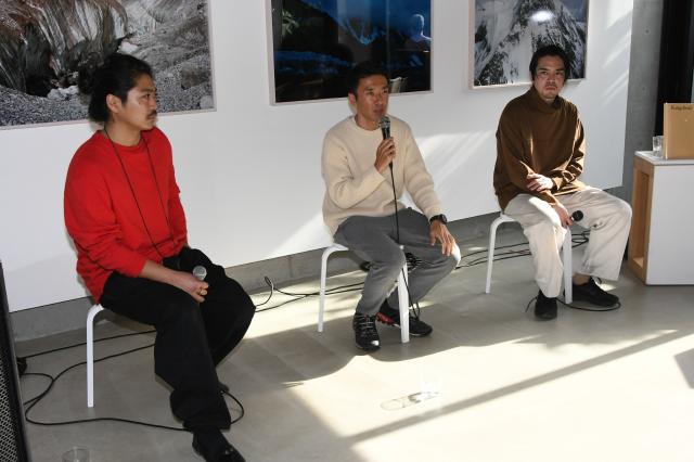 平良下里の「PALI GALLERY(パリ・ギャラリー)」で現在、写真展「Road to K2」を開催している写真家の石川直樹さんら3人による「アーティストトーク」が3日、同ギャラリーで開催された。石川さんは写真展の展示概要や山の写真集を作る上で心掛けてきたことなどを語った。