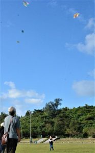この日は天候にも恵まれ、親子連れらはたこを手に次々と会場に集合した。宮古島地方気象台(下里)では正午の最高気温が20・5度、東北東の風5・2㍍を観測し、絶好のたこ揚げ日和となった。