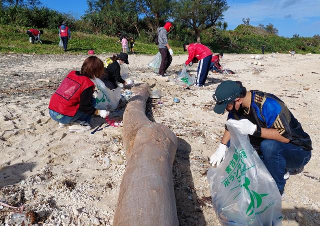 管内の郵便局員とその家族らが14日、高野漁港わきの砂浜でビーチクリーン活動を行った。参加者らは流れ着いたペットボトルや発泡スチロールなどを拾い集めた。約30分で用意したポリ袋30個分を拾った。