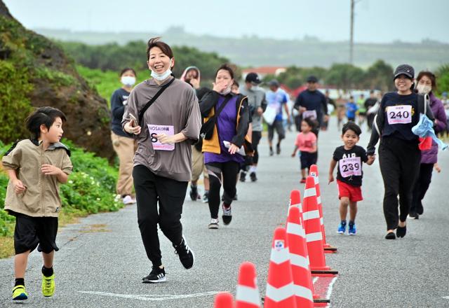 家族4人で参加した砂川碧音ちゃん(6)は「風が強かったけど一生懸命に走って楽しかった。幼稚園のお友達にも会えてうれしかった」と笑顔で話した。