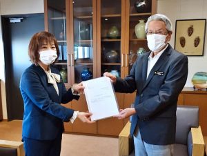 市役所で行われたこの日の答申では、副委員長の下地睦子市環境衛生局長が座喜味市長に対して、審議経過と答申内容に至った理由について説明した。