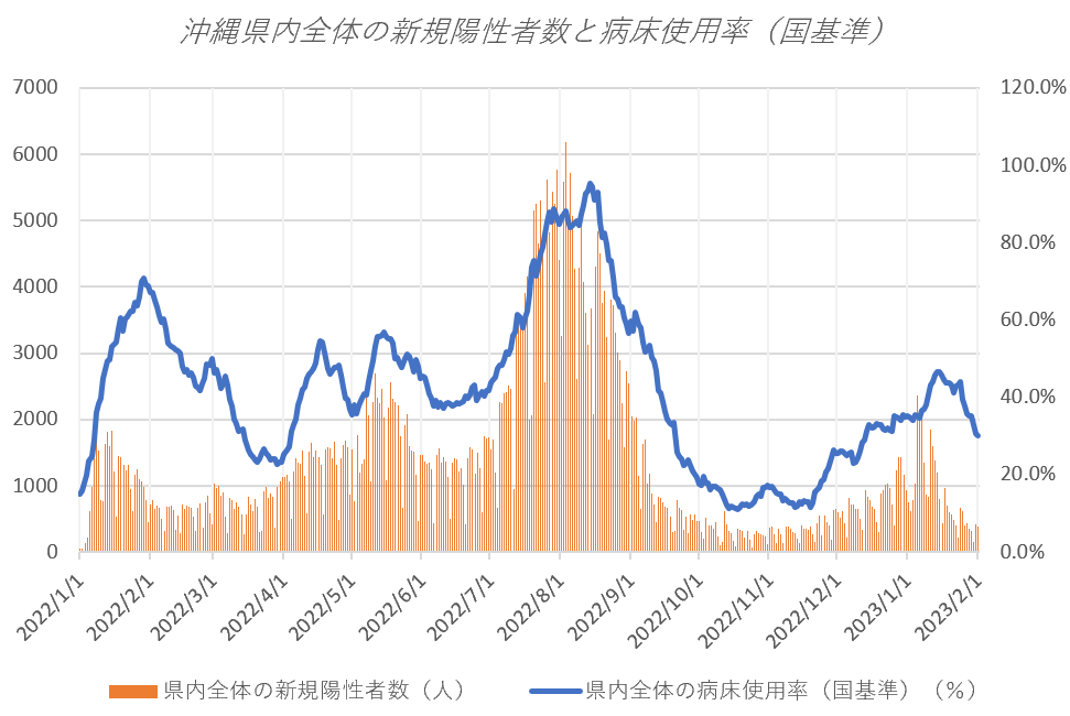 沖縄県内全体の病床使用率(国基準)30.2%