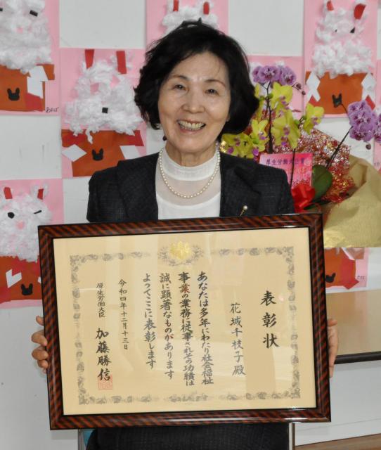 南風福祉会ひよどり保育園(平良西原)の園長を約40年務める花城千枝子さん(74)がこのほど、社会福祉事業従事功労者として厚生労働大臣表彰を受賞した。3日、本紙の取材に対し、花城さんは「職員や友人、知人がとても喜んでくれて良かった」と喜びながら、「今後は次の世代の皆さんに引き継ぎ、頑張ってもらいたい。見守り役としてアドバイスやサポートをしていきたい」と語った。