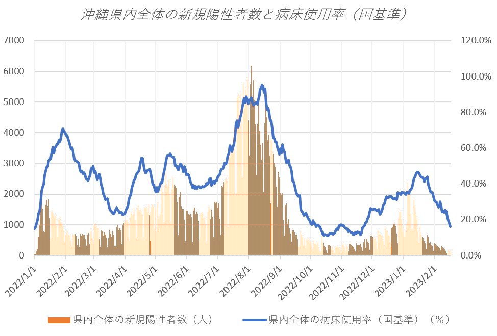 直近1週間の新規陽性者数(人口10万人当たり) 沖縄県72.24人全国47位