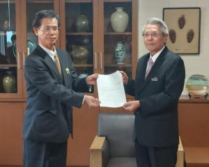 市国民健康保険運営協議会の石原智男会長は16日、市から諮問のあった国民健康保険税の後期高齢者支援金等課税額の限度額と出産育児一時金の引き上げについて、「妥当」と座喜味一幸市長に答申した。後期高齢者支援金等課税額の限度額は現行の20万円から22万円、出産育児一時金は40万8000円から48万8000円に引き上げる。市議会での条例改正、市長による専決処分を経て、今年4月1日から施行される。