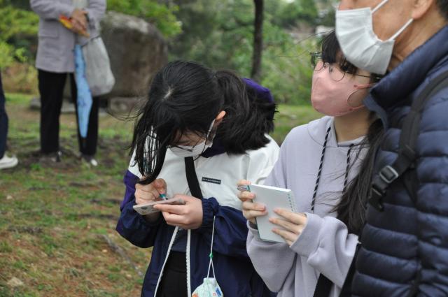 春の俳句吟行会(主催・宮古島ジュニア俳句育成会)が2月26日、選者に山田佳乃さん(俳句誌『円虹』主宰)を招きカママ嶺公園で行われた。親子連れら約20人が参加。冷たい北風が吹く中、俳句の題材を求めて公園内を散策し、思い思いの俳句を詠んだ。特選には「たんぽぽは白と黄色があるんだよ」と詠んだ池田知史君(南小2年)ら3人の句が選ばれた。