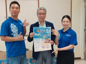 「第45回サンゴの楽園未来まで集まれ遊ぼう宮古島の海びらき」が4月2日に下地与那覇前浜ビーチで開かれる。新型コロナウイルス感染拡大の影響で過去3回は規模を縮小していたが、今回は4年ぶりに制限を解除し、観客を動員して行われる。アトラクションでは大相撲元大関のKONISHIKI(小錦)さんのスペシャルライブがある。主催する宮古島観光協会の吉井良介会長らが10日に会見し、多くの来場を呼び掛けた。