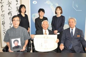 2月1日付で、地方自治功労として旭日単光章を受章した元伊良部町議会議員の武富光一さん(88)=伊良部長浜=への叙勲伝達式が10日、市議会議長室で行われた。上地廣敏議長から伝達を受けた武富さんは「人生のたそがれを迎えている。これから国家国民のために何ができるか分からないが、強い心を持ち、老骨にむち打って世のため人のため尽くしていきたい」と語った。