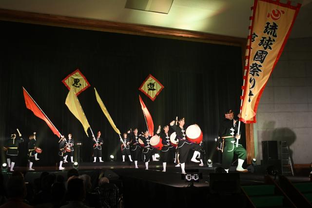 琉球國祭り太鼓宮古支部による自主公演「ぶどぅれ!」が19日、伊良部公民館で開催された。会場には用意していた椅子が足りなくなるほどの多くの観客が来場。出演メンバーらは勇壮で力強い太鼓の演舞で観客を魅了した。