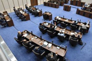 採決を前に、市民創会の狩俣勝成氏は「政策参与の予算措置と同じようなやり方で、会派として納得いかない。抗議の意味も込めて退席する」と語り、砂川和也氏と共に採決には加わらなかった。