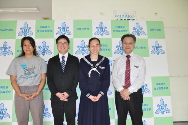 指導した英語教諭の仲間正士さんは「宮古の高校生がどんどん世界へ出ていくことを今後も応援していきたい」、外国語指導助手(ALT)のカレン・イイヅカさんは「帰ってきてから話を聞くのが楽しみ」とそれぞれ語った。