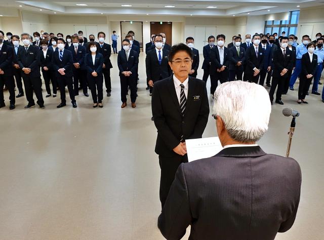 辞令を受け取ったのは、部長級と課長級以上の管理職47人と、新規採用職員21人。