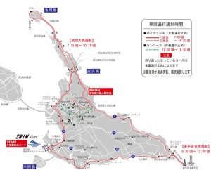 バイクコースは前回の157㌔から123㌔へ34㌔短縮。宮古島東急ホテル&リゾーツをスタート、市陸上競技場ゴールの、池間島を含め島を約1周半回るコースで、前回まで含まれていた来間大橋と伊良部大橋は今回、コースから除外されている。制限時間は午後2時まで。