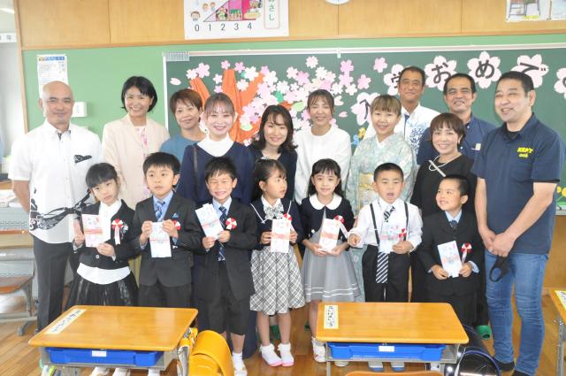 狩俣自治会(國仲義隆会長)は11日、狩俣小学校の新入学児童7人に入学祝い金を贈った。狩俣小の存続に向け、入学への感謝を込めて毎年贈呈しているといい、國仲会長は「子供が増えて、地域ににぎやかな声が響いていけばうれしい」と述べ、一人一人に祝い金を手渡した。