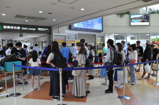 ゴールデンウイーク(GW)終盤となった6日、宮古空港はふるさとや観光地などで休日を過ごした人たちのUターンラッシュが始まった。チェックインカウンターや搭乗待合室入り口は、帰省客を見送る家族や観光客など多くの人で一時混雑した。航空会社によると、東京や関西方面に向かう便はほぼ満席だという。