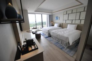 同ホテルは、地上8階建てで客室は329室。レストランは四つ、プールは屋内外に計5カ所あり、宴会場やミーティングルーム、チャペルも備える。