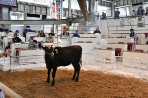 成牛を含めた上場頭数は368頭で、うち359頭が取り引きされた。成牛を含めた1頭平均価格は43万3872円で、内訳は去勢が53万4285円、雌が34万6120円。