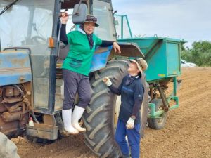 辺士名さんが力を入れているのが女性の活用。「人手不足を打開するのがスマート農業。女性でもドローンだけでなく大型機械の操作は可能」との考えだ。今期、植え付けは女性のみで作業している。