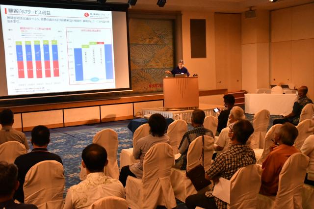 琉球銀行(川上康頭取)の2023年3月期経営説明会が20日、市内ホテルで開かれた。連結・単体ともに増収増益であることや、中期経営計画「Value 2023」などを紹介。説明会後には創立75周年感謝会が開催された。