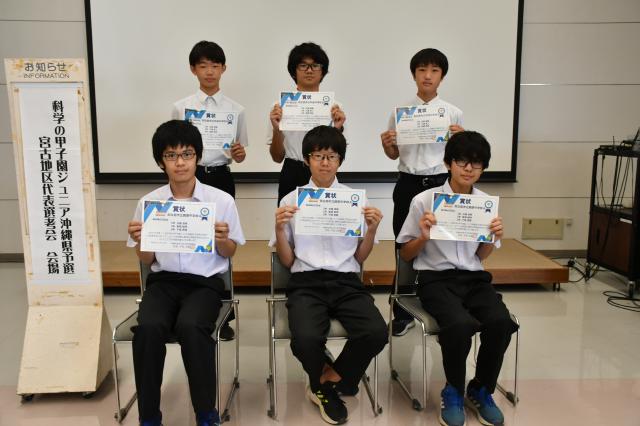 準優勝の平良B(比嘉悠陽さん、三浦凛人さん、吉岡翔史さん)と共に、上位2校が宮古地区代表として8月22日に行われる県大会に出場する。同大会は、科学好きの裾野を広げるとともに、未知の分野に挑戦する探究心や創造性に優れた人材を育成することを目的に開催されている。