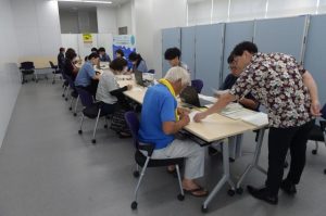市の「省エネ家電製品買換促進補助金交付事業」の第2回申請受け付けが、11日から市役所で始まった。第1回の受付申請時には大きな混乱が見られたが、今回は各日で優先地域を設定し、対応する職員を増員するなどの対策を取っており、呼び出し番号順に受け付けを始めるなど手続きはスムーズに行われた。第2回の申請受け付けは29日まで。