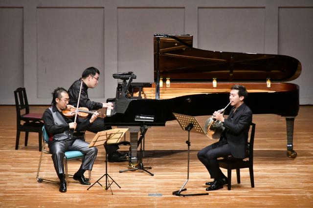 地域住民のためのクラシックコンサート「ホルン・ヴァイオリン・ピアノの融合~室内楽の愉しみ~」(主催・県、市教育委員会、三井住友海上文化財団)が10日、マティダ市民劇場で開催された。訪れた市民らは「ホルン三重奏曲」(ブラームス)などホルン、バイオリン、ピアノが奏でる室内楽曲で「芸術の秋」を堪能した。