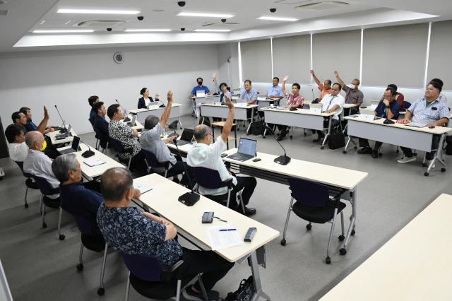 開会中の市議会(上地廣敏議長)9月定例会は14日、予算決算委員会(下地茜委員長)を開き、2022年度の一般会計歳入歳出決算の審査を行った。前回、違法性を指摘された行政財産の貸し付けについて市当局は「記行政財産の貸し付けは地方自治法を基に可能」と説明した。しかし、市条例に基づく手続きでは市として適切ではなかった部分があったとし、条例改正など含めて「是正する」と理解を求めたが審議の結果、賛成少数で不認定となった。