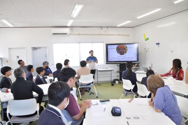 「沖縄をソーシャルビジネスアイランドに」をコンセプトにした「島ぜんぶでうむさんラブ」(主催・よしもとラフ&ピース、うむさんラボ)キャラバン2023ワークショップ(WS)が16日、平良の学習塾で行われた。参加した市民らは、先輩起業家の講話やアイデア実現に向けたコンセプトづくりなどを通して、社会課題をビジネスの手法で解決する「ソーシャルビジネス」について学んだ。