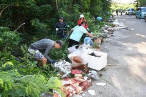 ごみゼロネットワーク(佐々木有希代表)主催の「第6回ポイ捨て拾い大作戦!」が17日朝、伊良部の洲神(すがみ)ため池付近の路上で行われた。同ネットワークメンバーや趣旨に賛同した市民など15人が参加し、道路脇に不法投棄された大量のごみを回収した。