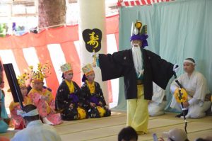 組踊り「忠臣公之組(忠臣身替)」は10幕にも及ぶ一大絵巻となっており、忠臣亀千代が忠義より敵を討つ物語を演じた。この日のために練習を重ねてきたとあって見応えある舞台で、集まった観客は食い入るように見詰めていた。