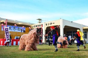 旧暦8月15日「十五夜」の29日、城辺の上区自治会(喜屋武則吉会長)、うるか自治会(砂川安功会長)で豊年祭がそれぞれ開催された。両自治会が五穀豊穣(ほうじょう)と集落の繁栄を願って勇壮な獅子舞を奉納した。