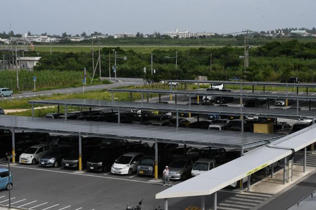 市役所駐車場に設置された太陽光パネルで発電した電力の供用が2日から開始された。それに合わせて駐車場に設置された2台の電気自動車(EV)用急速充電器も稼働開始となった。市では、太陽光で発電した再生可能エネルギーの利用で、二酸化炭素排出量削減と電気料金の削減を図っていきたい考えを示している。