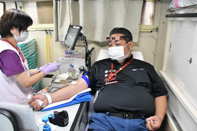 県赤十字血液センターによる10月期宮古地区移動献血が10日、始まった。初日は市役所で実施され、市職員や来庁者ら73人が献血を行った。同センターは多くの市民に協力を呼び掛けている。