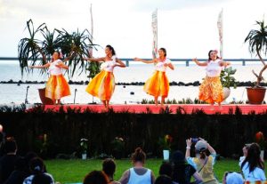 2019年から途絶えている「カギマナフラin宮古島」(主催・同実行委員会)が来年10月に復活することをアピールしようと9日、平良港トゥリバー海浜公園で出演者がフラダンスを踊り、機運を高めた。地元のチームのほか、沖縄本島や石川県のチームも参加し観客を魅了した。