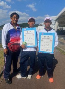 かごしま国体のカヌー競技が16日、鹿児島県伊佐市菱刈カヌー競技場で少年男子カナディアンペア200㍍の決勝が行われ、平良一喜(宮古総合実業高校3年)・山城瑞希(沖縄水産高校3年)組が準優勝した。同500㍍との2冠を狙ったが、1位に0・181秒差で惜敗。平良は「2冠を目指していたので悔しいが力は出し切れた」と語った。