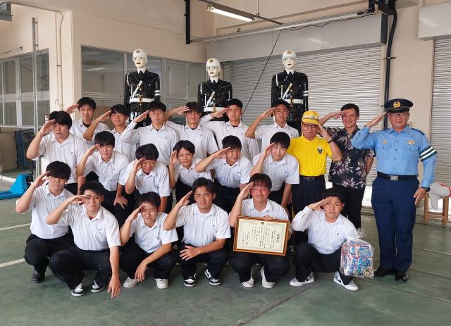 生徒たちが修繕した「宮古島まもる君」の修繕完了式が16日、宮古工業高校であり、自動車機械システム科の3年生20人が約1カ月かけてピカピカにリニューアルした3体をお披露目するとともに宮古地区交通安全協会に引き渡した。3体はこの日のうちに城辺西西バス停前など3カ所に設置された。